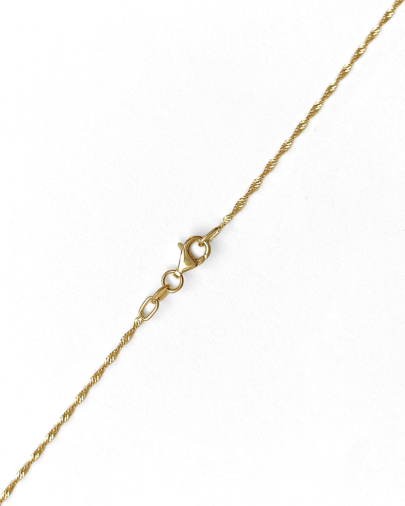 Gefertigt aus 9 Karat Gold, besticht unsere Halskette Shiny Twist durch ihre zeitlose Eleganz, das zarte Design und ihren strahlenden Glanz. Perfekt zum Layern, alleine getragen oder kombiniert mit Deinem Lieblingsanhänger, um einen ganz persönlichen Look zu kreieren