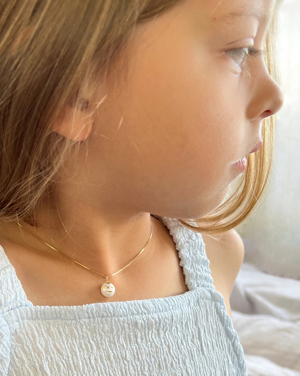 This adorable charm features a button-shaped freshwater pearl nestled in a 9-karat gold or sterling silver pendant cup, making it as unique as the child who wears it. Perfect for everyday wear or as a treasured keepsake, it’s a meaningful accessory for little ones. Combine multiple charms to creat a truly one-of-a-kind piece that grows with them.